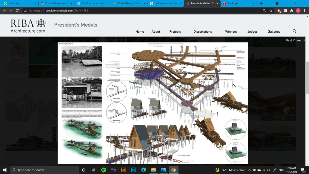 In this project they have used a buoyant foundation is designed to be placed on a platform that is elevated off ground and supported by short piers. When floods occur, it rises and floats on the surface so this prevents the platforms and areas from sinking. This increases RESILIENCE for the COMMUNITY. Beneath he platforms, electricity and sewage pipes sun so it helps the are become more self sufficient for the community.